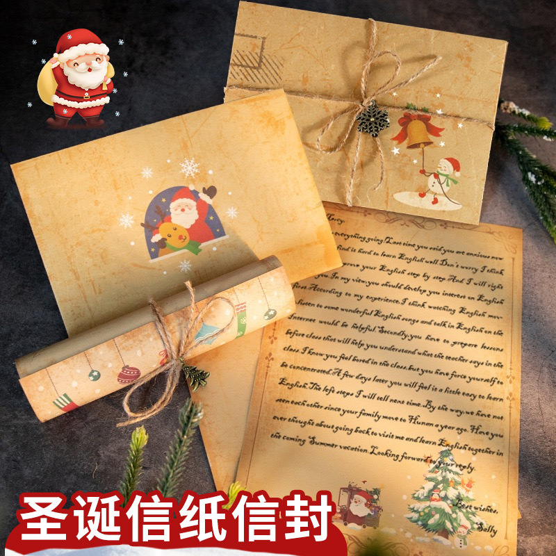 クリスマスギフト封筒レターセットアマゾンお土产クラフト纸レトロクリスマスレター封筒卸売