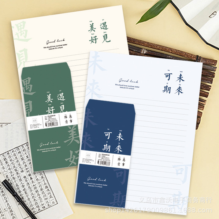 万事勝意a 4便箋封筒セット学生激励志メッセージ祝福語唯美文芸シンプル手紙紙