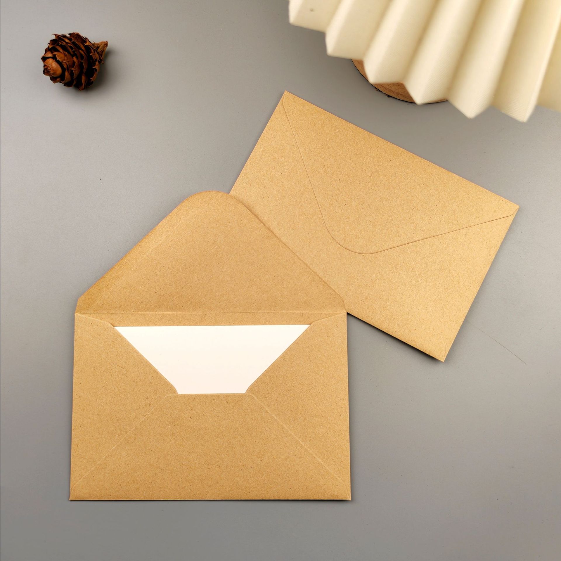 Amazonの人気商品ミニクラフト紙封筒バッグブラウングリーティングカードホルダー便利な唾液接着シール封筒卸売