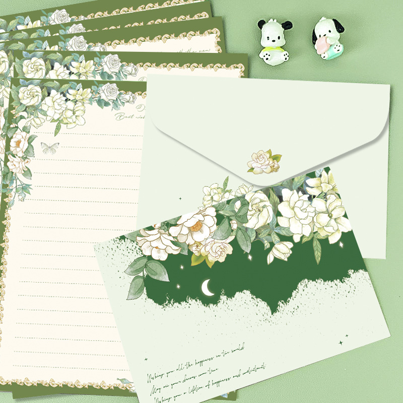 紙梵封紙便箋セットクチナシ花開手書き便箋文芸告白ラブレター祝福伝言便箋封筒