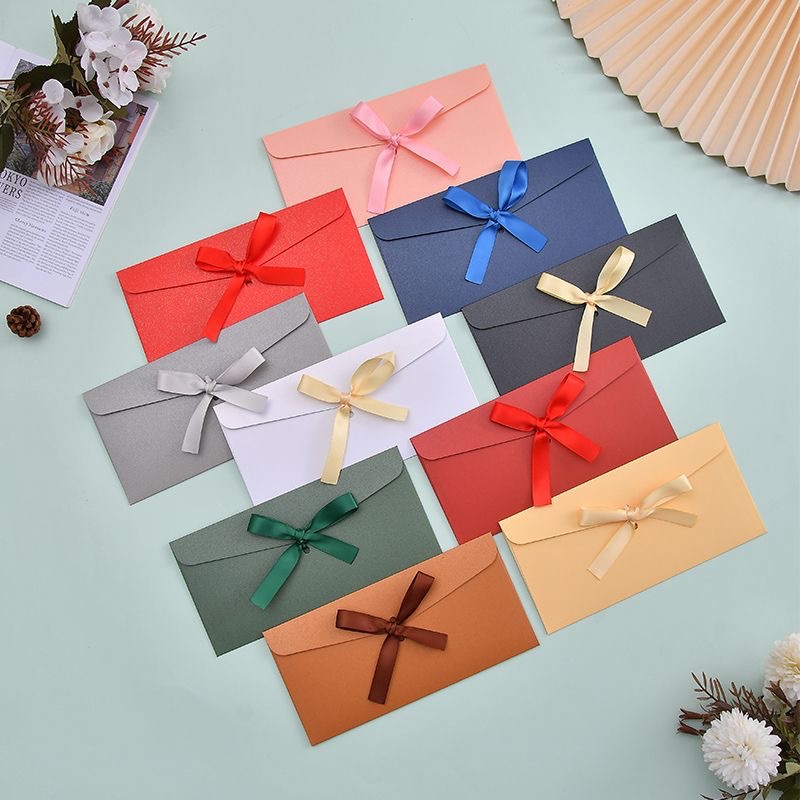 クリエイティブな蝶結びのグリーティングカード封筒、厚手の5号珠光紙リボン、イベント招待状やギフトの作成に使用可能
