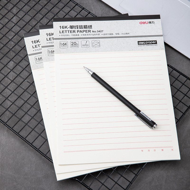 得力3427便箋赤い線の古い原稿用紙16k単線便箋20枚/本草原稿用紙作文紙