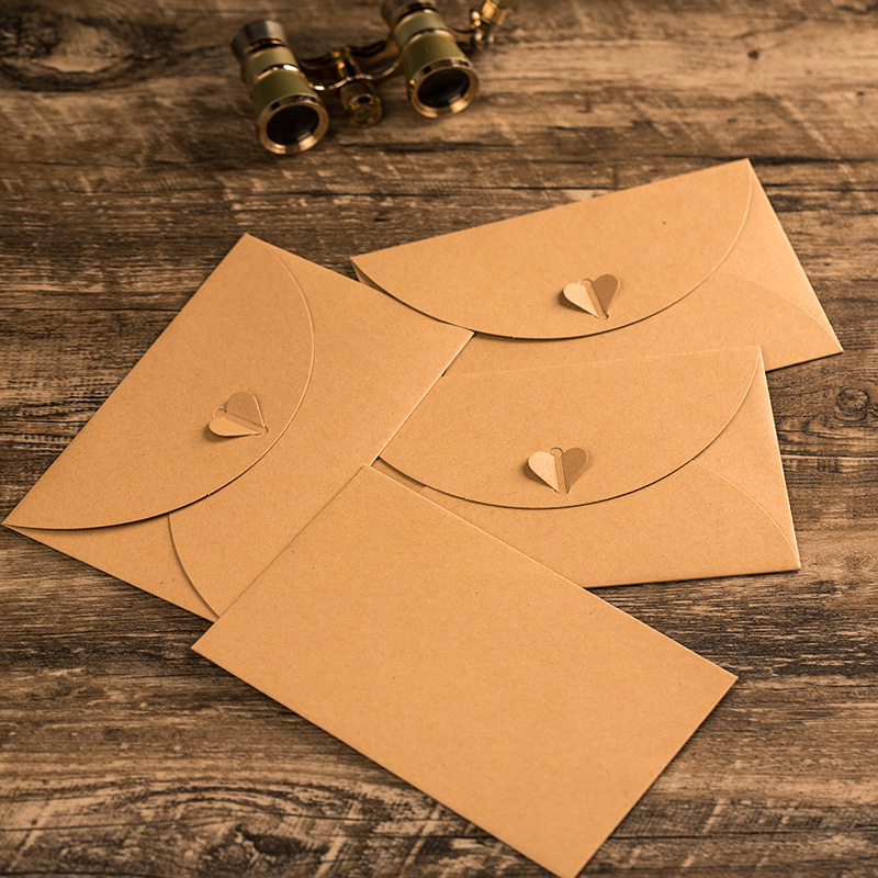 愛心ボタン封筒ハート型クラフト紙復古風ラブレターシンプルクリエイティブ告白カップル便箋はがき収納