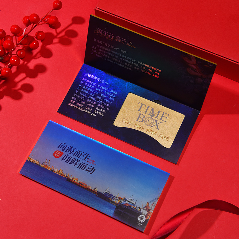 ロゴを印刷できるシーフードピックアップカードホルダー、シーフードバウチャー、ギフトバッグ、会員VIP体験限定