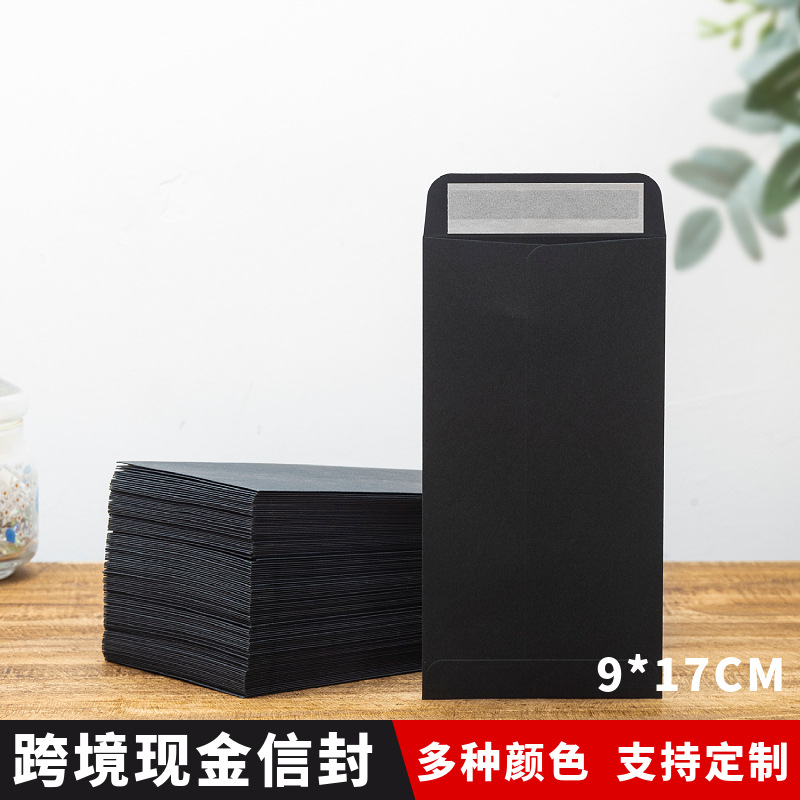 国境を越えたコイン小銭現金紙幣ブランク無地黒ボール紙中国封筒 9*16.5 リリース接着剤封筒カスタム