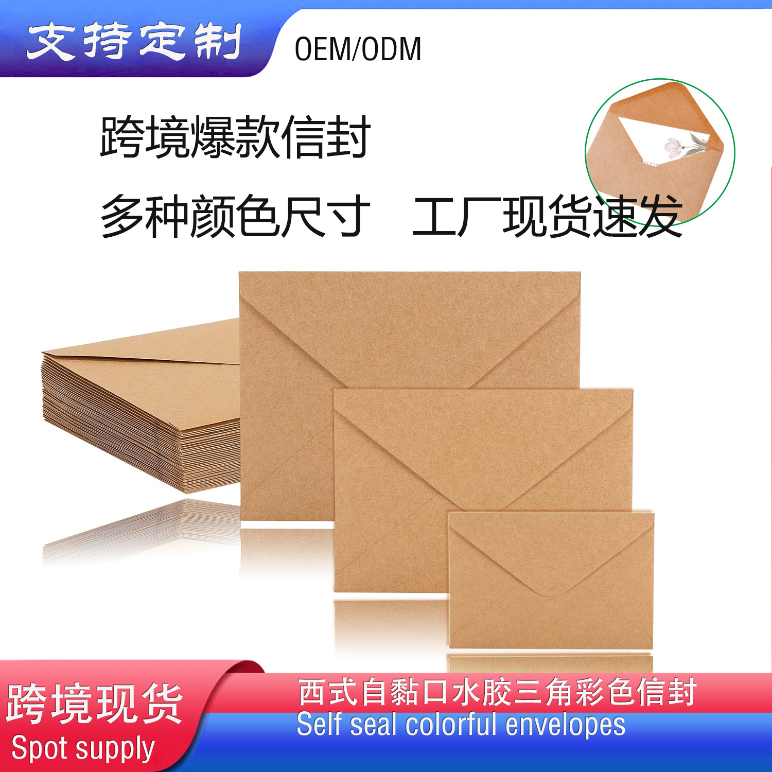 越境貿易用牛革紙口水糊封筒、アマゾンブラウン粘着三角グリーティングカード紙袋、ビジネスギフト