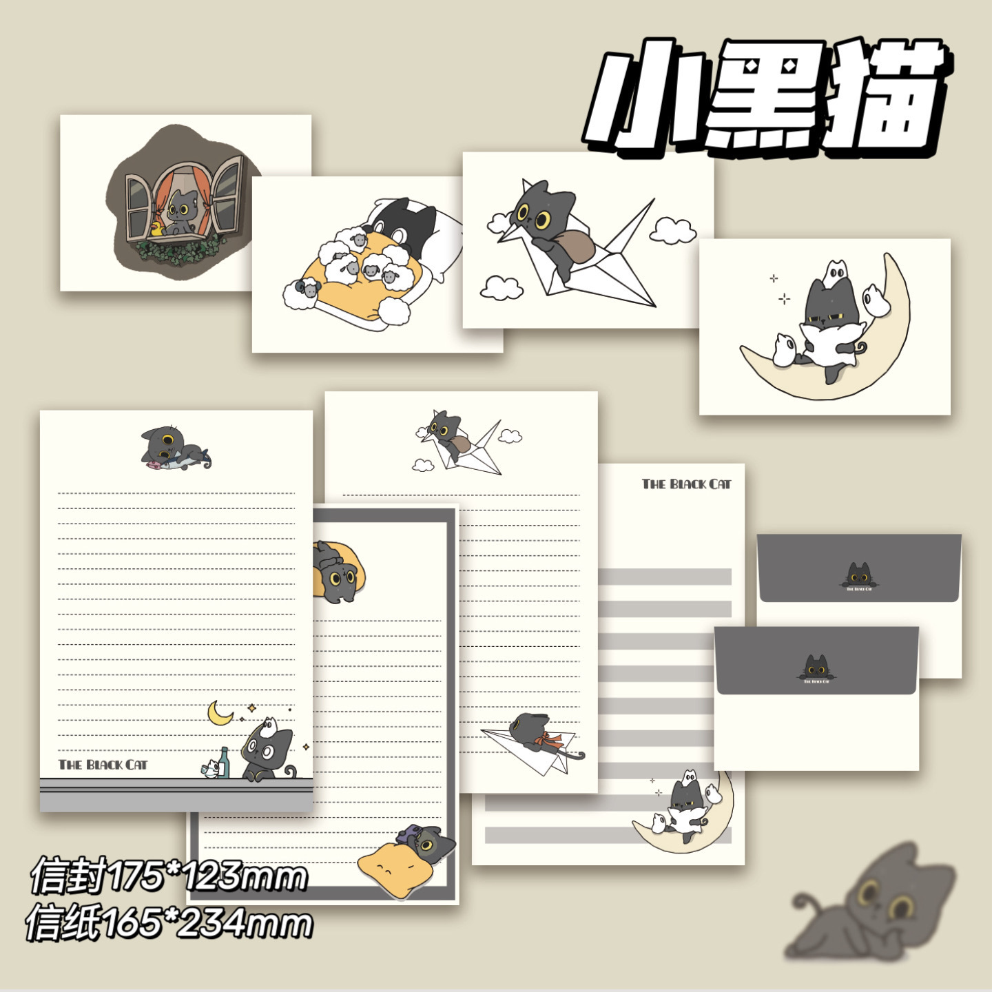 小さな黒猫封筒かわいい漫画高颜値ラインセット封筒レターシンプルins学生クリエイティブ封筒