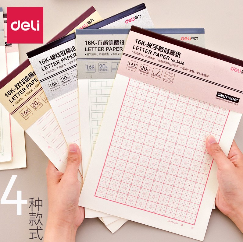 得力3428二重線の手紙の紙の方格の手紙の原稿用紙の16kの手紙の原稿用紙の20枚/本の作文の報告の紙の本
