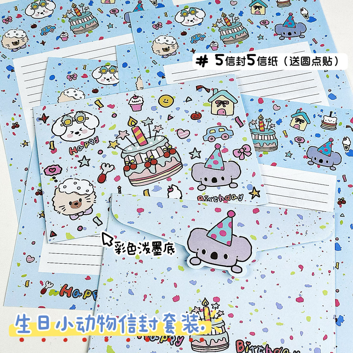 クリエイティブブルー诞生日小动物封筒レターセットお祝い记念プレゼント手书きメッセージ高颜値レター