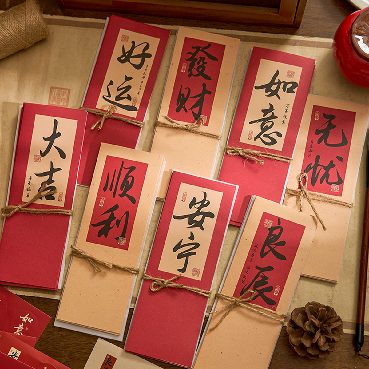 中国式書道封筒国風紅包カード新年祝福アイデア高級感書道封筒