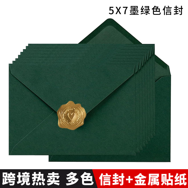越境西洋風墨緑色高級金属製ハートステッカー封筒セット 結婚式招待状 グリーティングカード 結婚式必需品