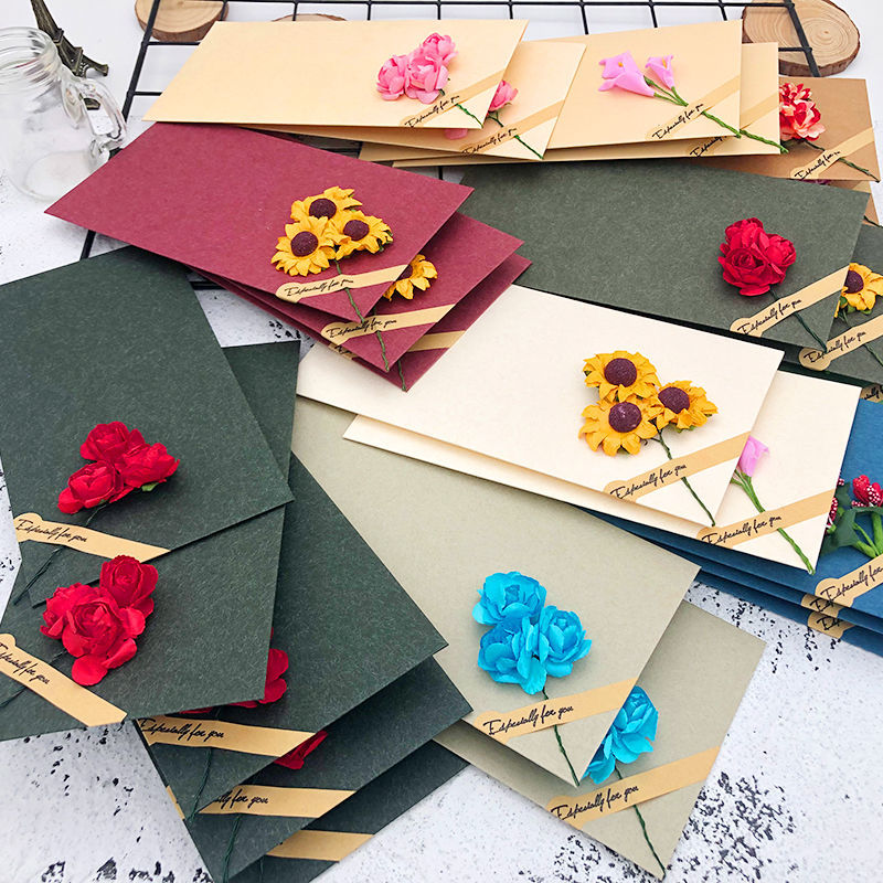 文芸小清新創意封筒レターセットドライフラワーdiyレトロ箔押しラブレター招待状レター