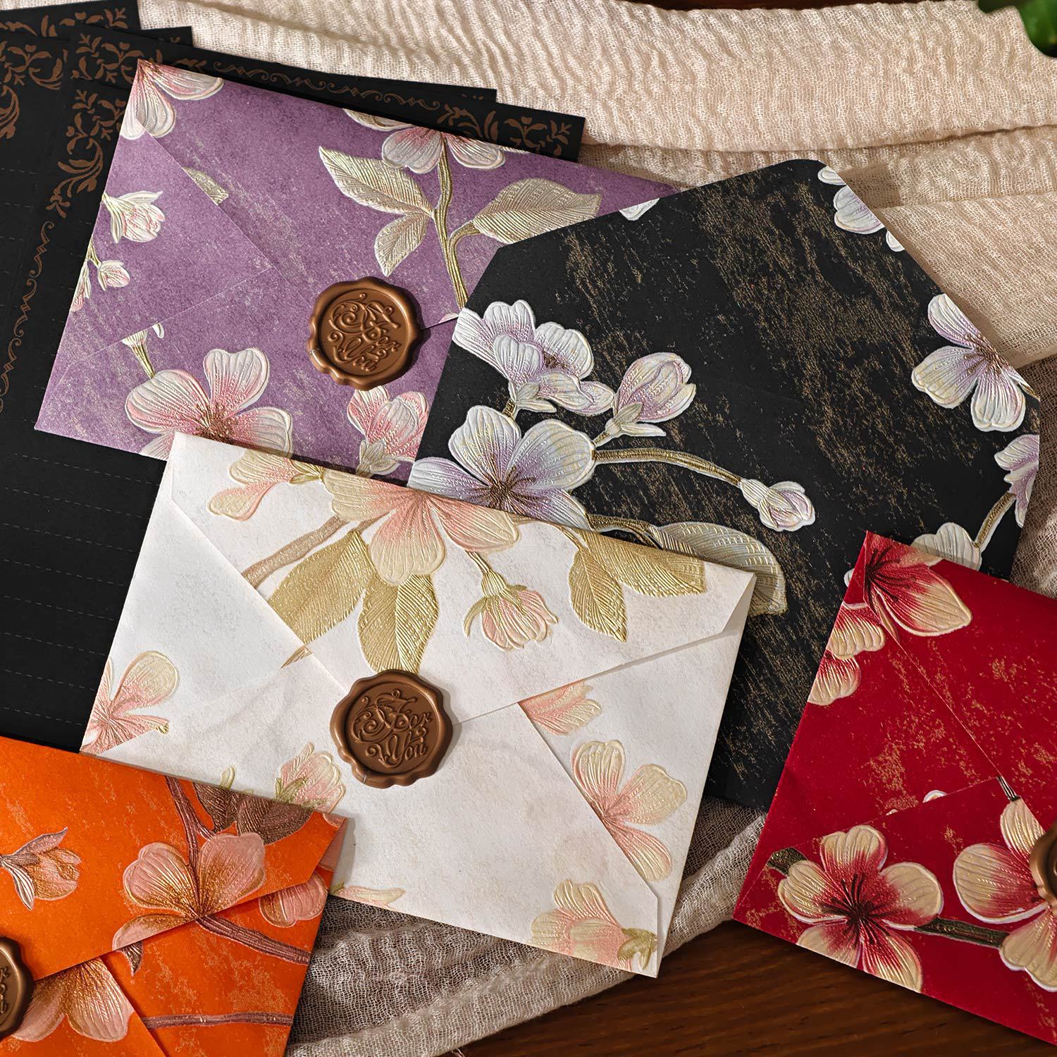 フローティングエアノート 四季の花レターシリーズ レトロ凹凸模様封筒 高級招待状バッグ 招待状 在庫あり