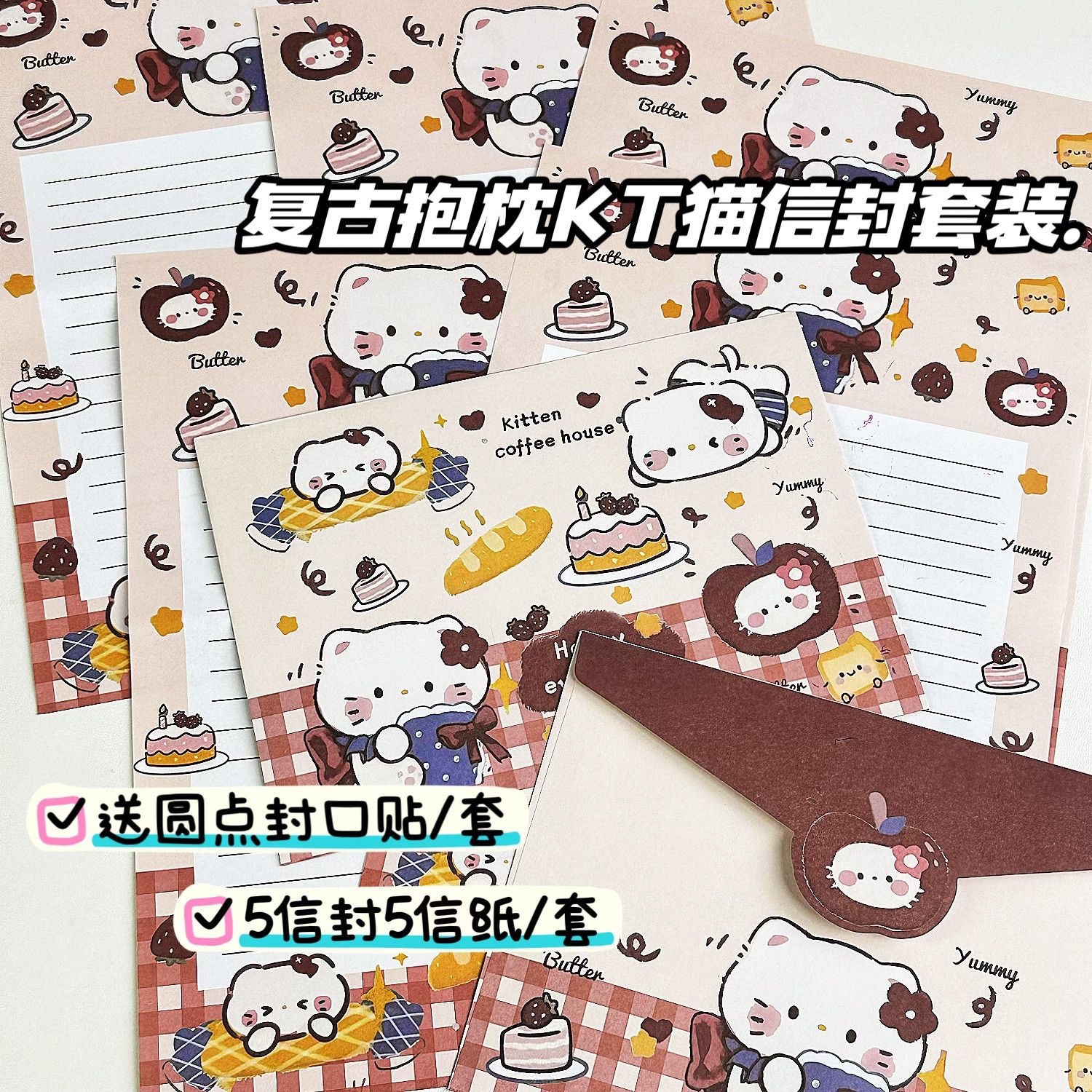 レトロ枕 KT 猫便箋セット 祝福記念ギフト 手書きメッセージ 高価値インスタイルレターヘッド