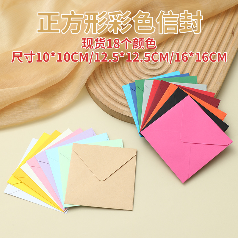 現物シンプルカラーヨーロッパ式正方形封筒クロスボーダー純色カラーテープ小封筒10*10 cm16 * 16cm
