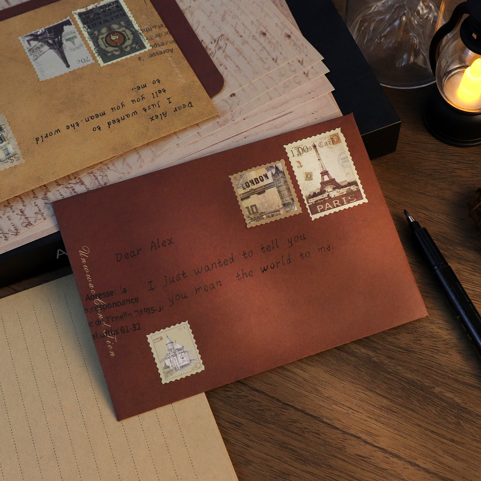 リネン封筒レターセットレトロラブレター中国風牛革特殊紙招待状はがき火漆封筒