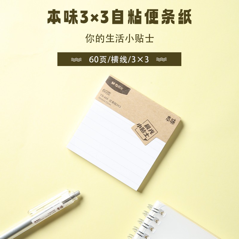 ブランド本味横線付箋60ページ自己粘着メモ紙3*3角型事務メモ帳貼りn回貼りYS-408