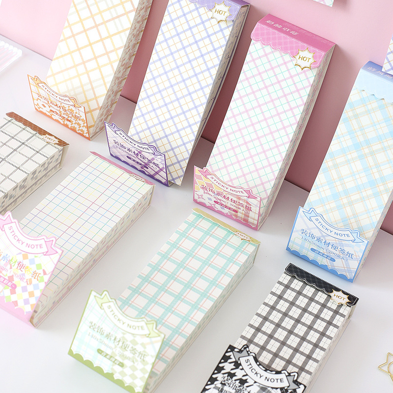 200枚格子シリーズ付箋紙手帳装飾素材粘着性のないメモ紙文芸風厚手メッセージ紙