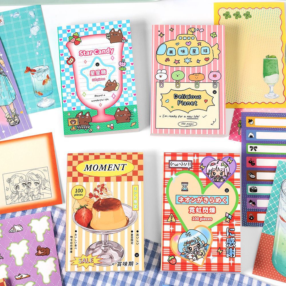 漫画のノートブック、かわいくて見栄えが良く、破れやすく粘着性があり、学生が忘れることを準備するためのポータブルインスタイルのメッセージステッカー