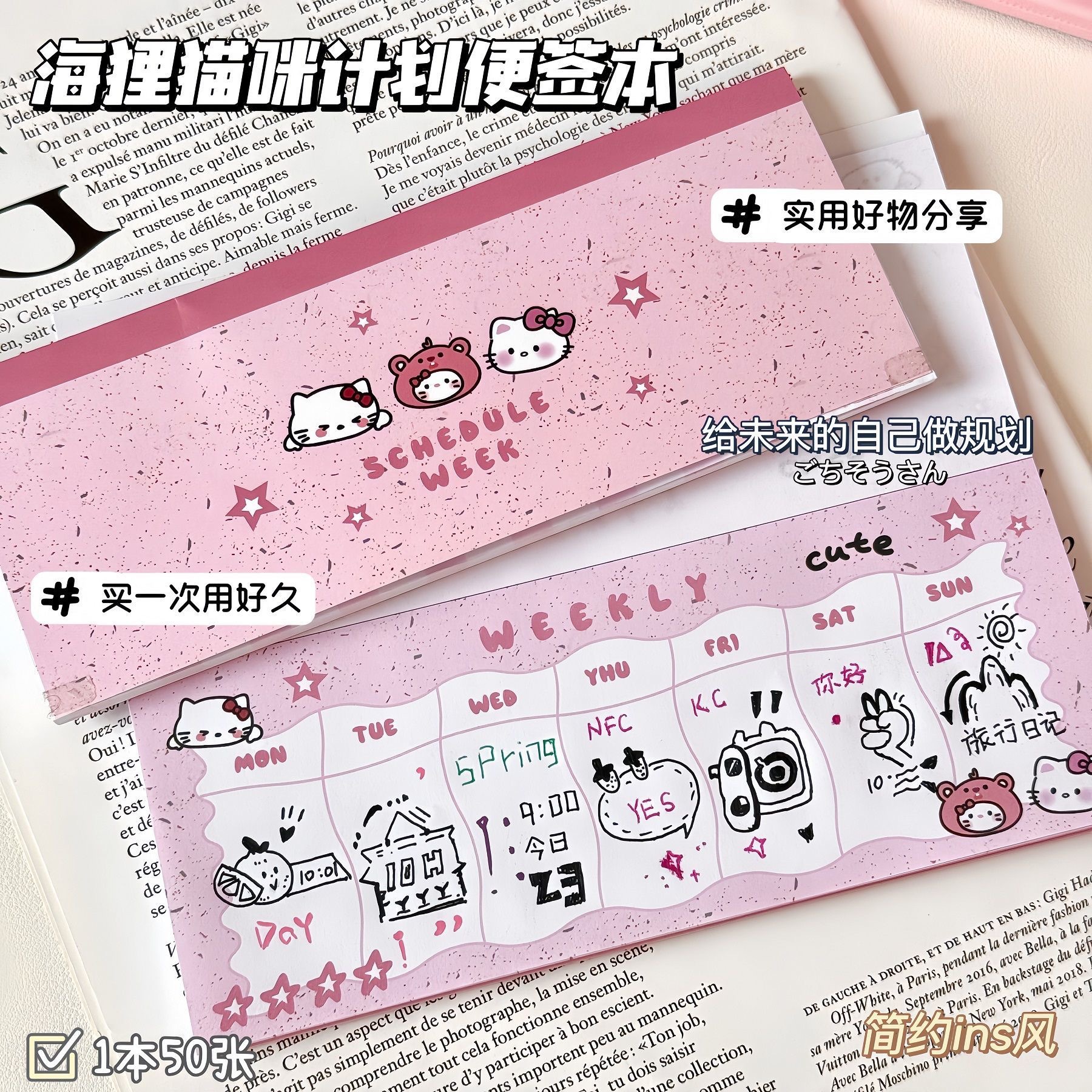 小紅書と同じスタイルのサントゥメモ帳、孫英莎と王楚欽のグッズ、両面粘着紙メモ帳、非粘着性、50ページ