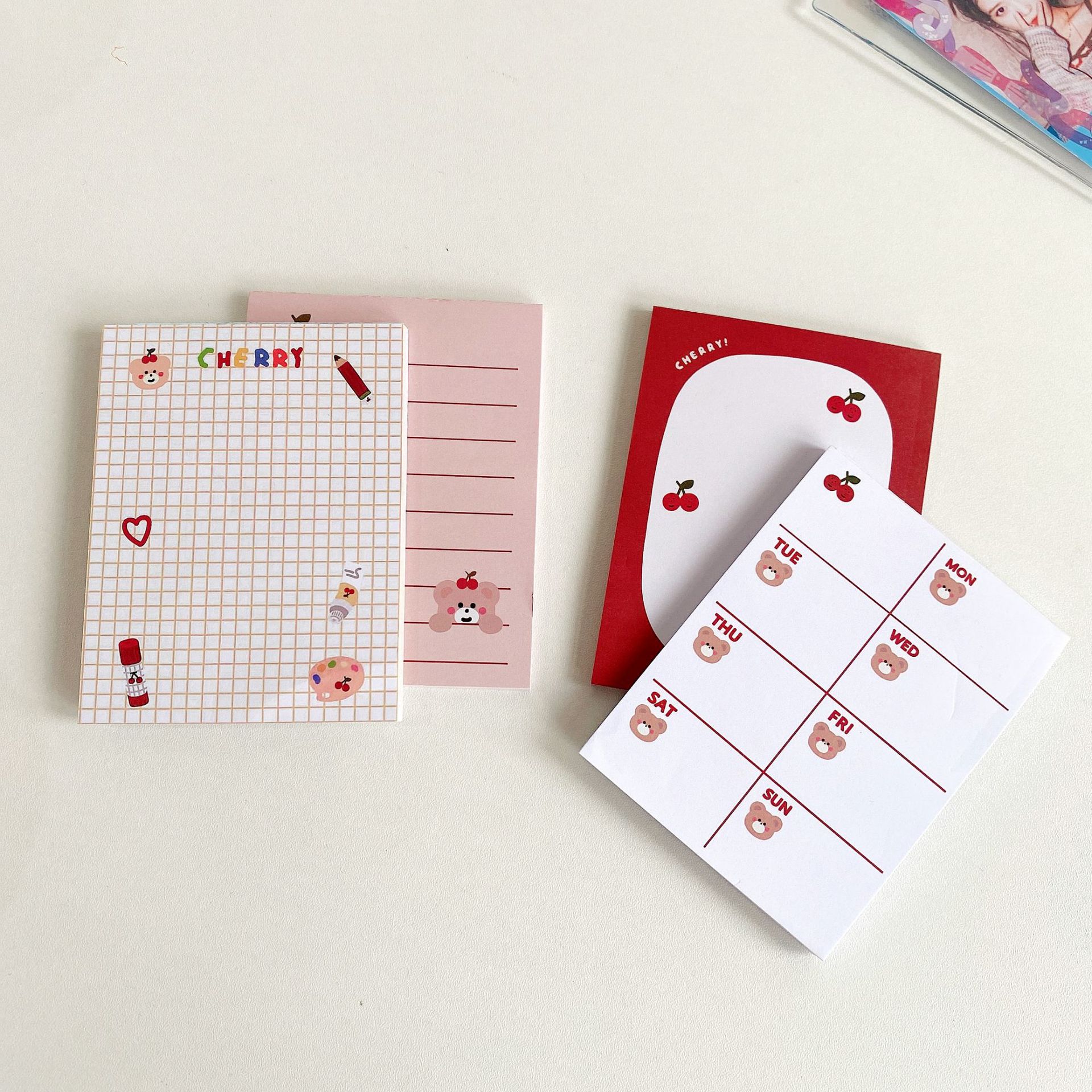韓国版insかわいいさくらんぼ熊便箋本は携帯メッセージをはがしてメモを貼ることができる