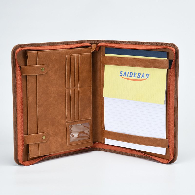 多機能pu革ジッパーブリーフケースビジネスマネージャークリップオフィス収納フォルダファイルクリップ印刷ロゴ