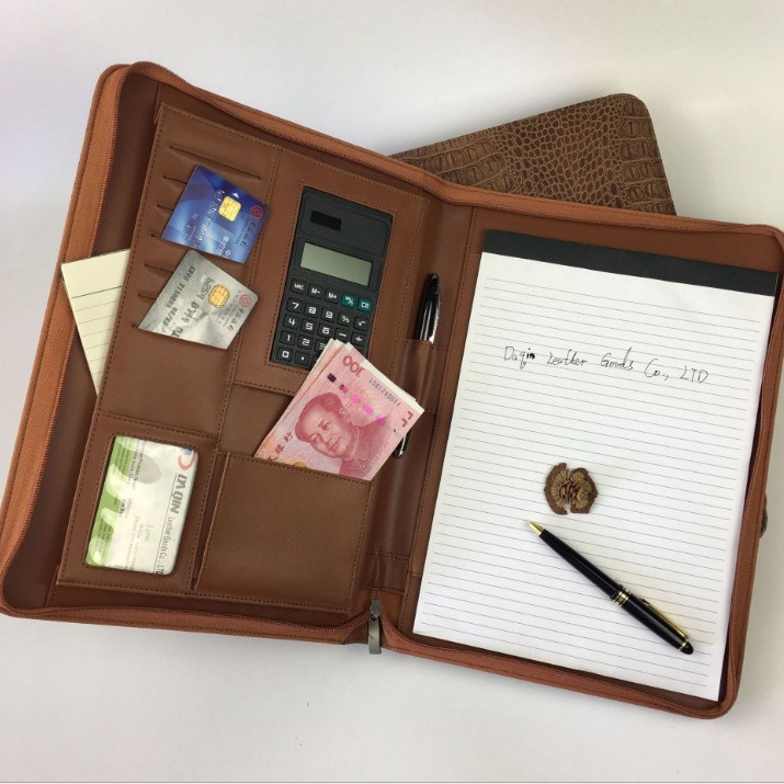 メーカーの専門カスタムa6皮革マネージャーは12桁の計算機のメモ帳を持っています。