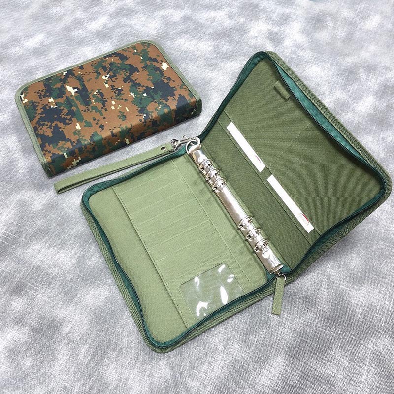 迷彩生地マネージャーチャック付きルーズリーフ穴クリップファイル万用マニュアル刺繍可能
