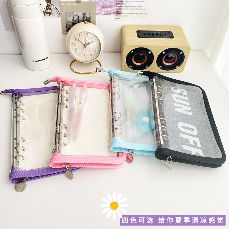 韓国thence平代金透明黒色フラッシュファスナー6穴バインダーノートins追星手帳簿
