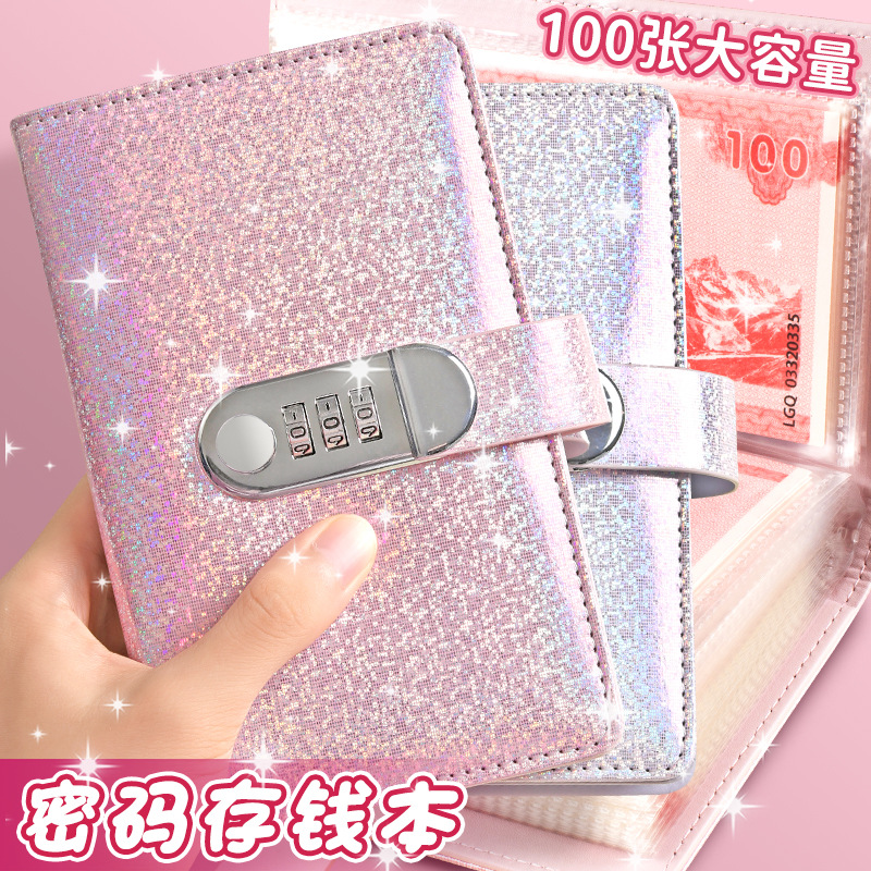 跨境2025年新款密码锁现金存钱本可放现金收纳袋存钱夹钱册记账本