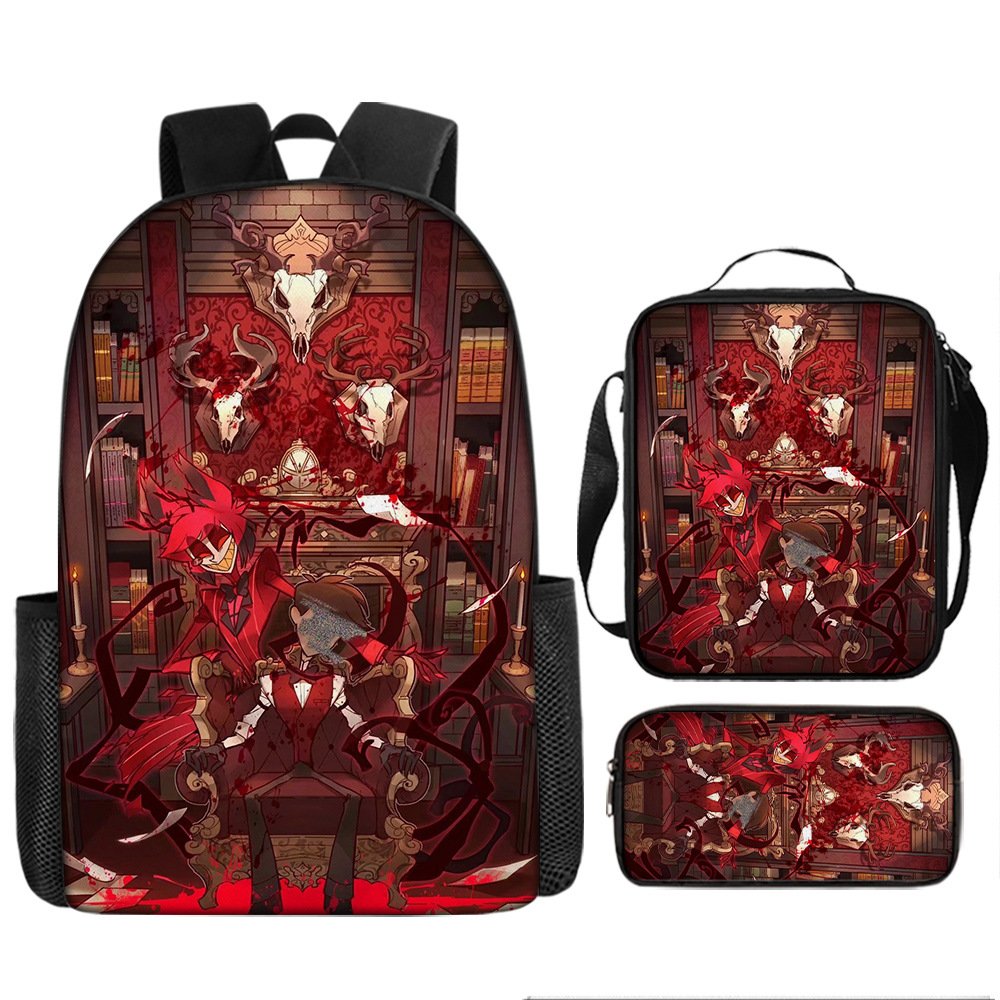 国境を越えた地獄の宿屋のかばんHazbin Hotel小学生のリュックサックの筆袋の3つのセットはゲームの周辺の包みを詰めます。