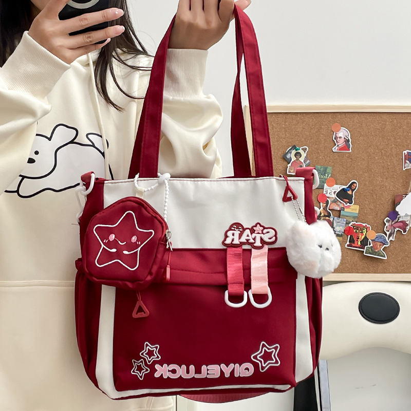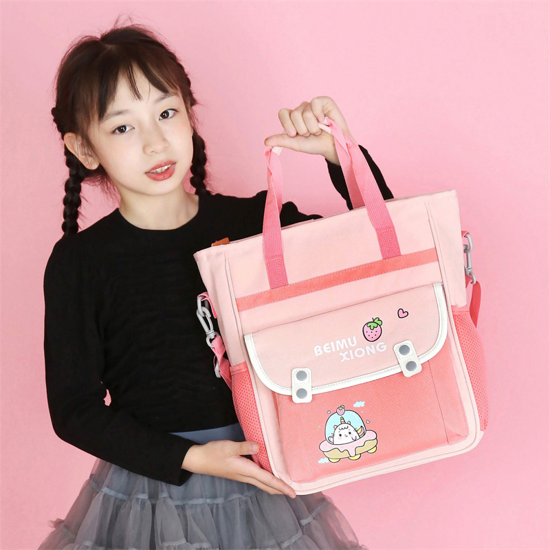 高颜值ナイロン製授業用補習バッグ 女子小学生向け パックバッグ カレッジ風 可愛い 多用途 補習バッグ ハンドバッグ