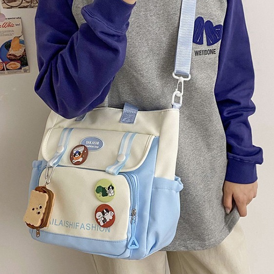学習用バッグ、授業用大容量ショルダーバッグ、韓国風ティーンエイジャー向け斜め掛けスクールバッグ、ナイロン製配色学習用ハンドバッグ