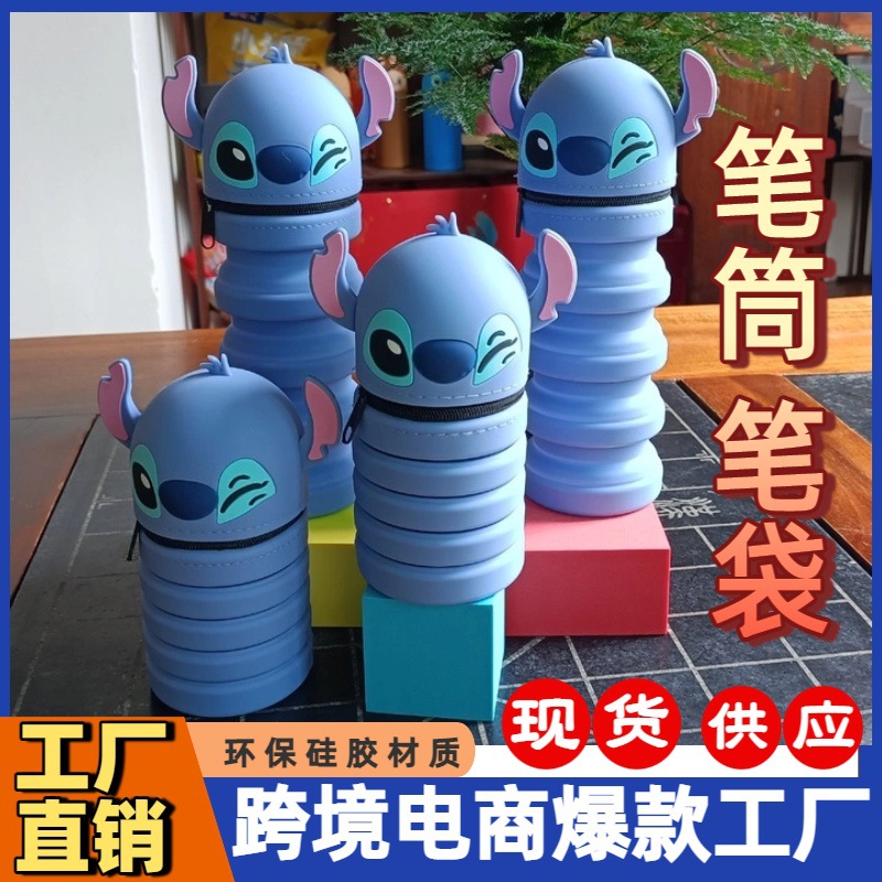 国境を越えた熱い販売ステッチ漫画シリコーン鉛筆バッグ折りたたみペンホルダー熱い販売輸出文具バッグ卸売文具工場