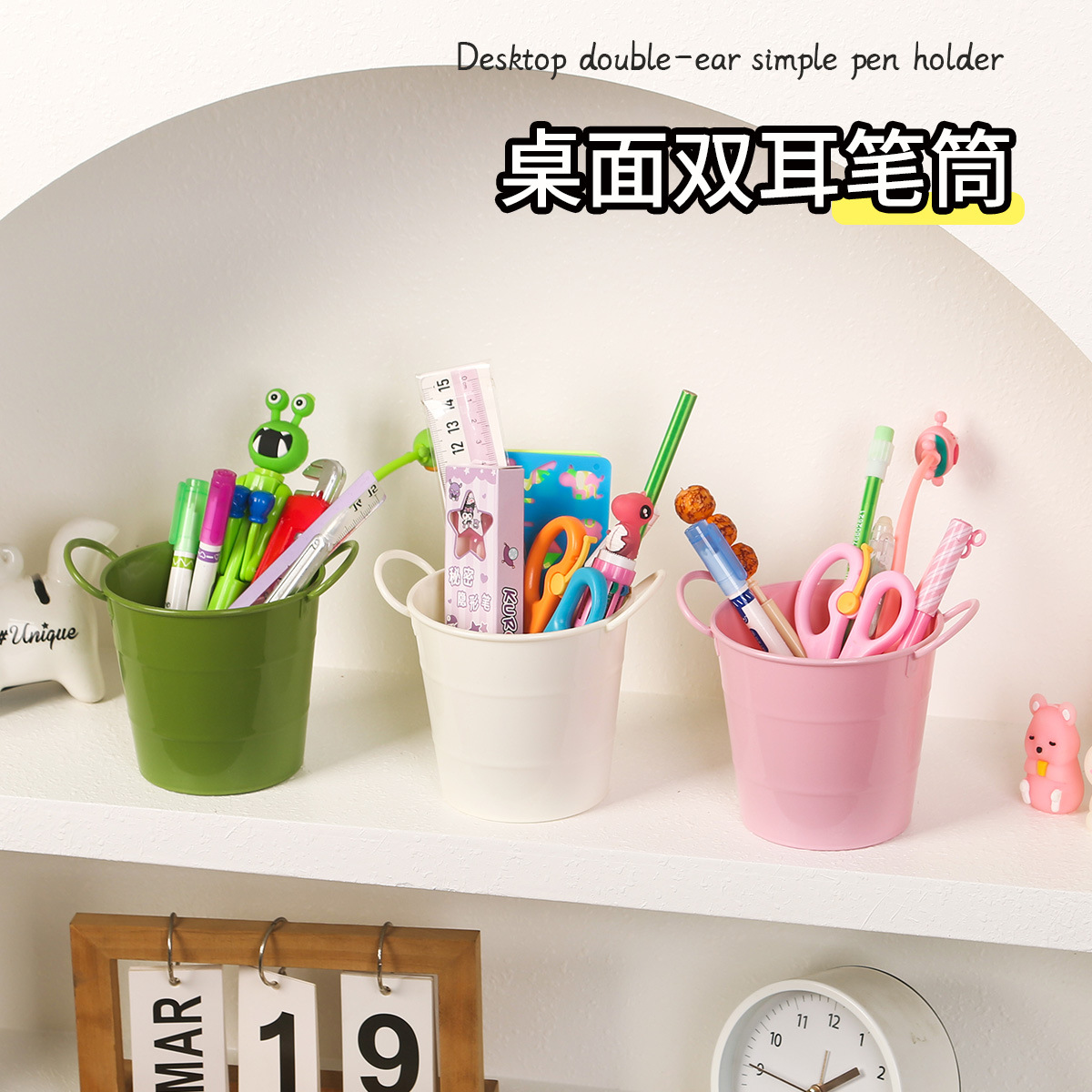 プラスチック製の面白い双耳バケツ型ペン立て、大容量、学生の机、オフィスの収納ペン立て、書斎のデスク飾り