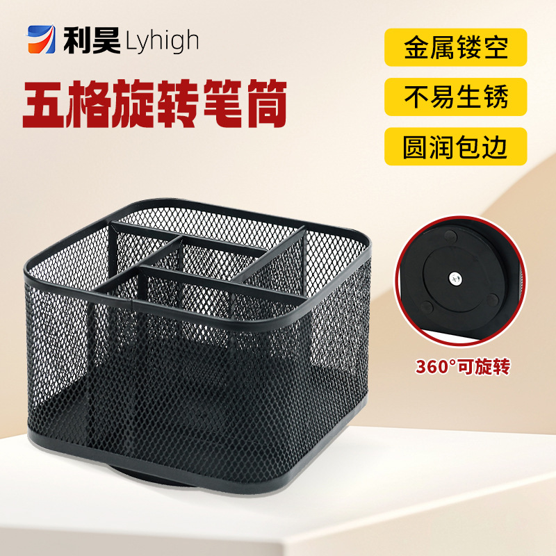 クロスボーダークリエイティブメタル回転ペンホルダーオフィスデスクアイアンメッシュ360度ペンホルダーグリッド文具収納5グリッドペンホルダー