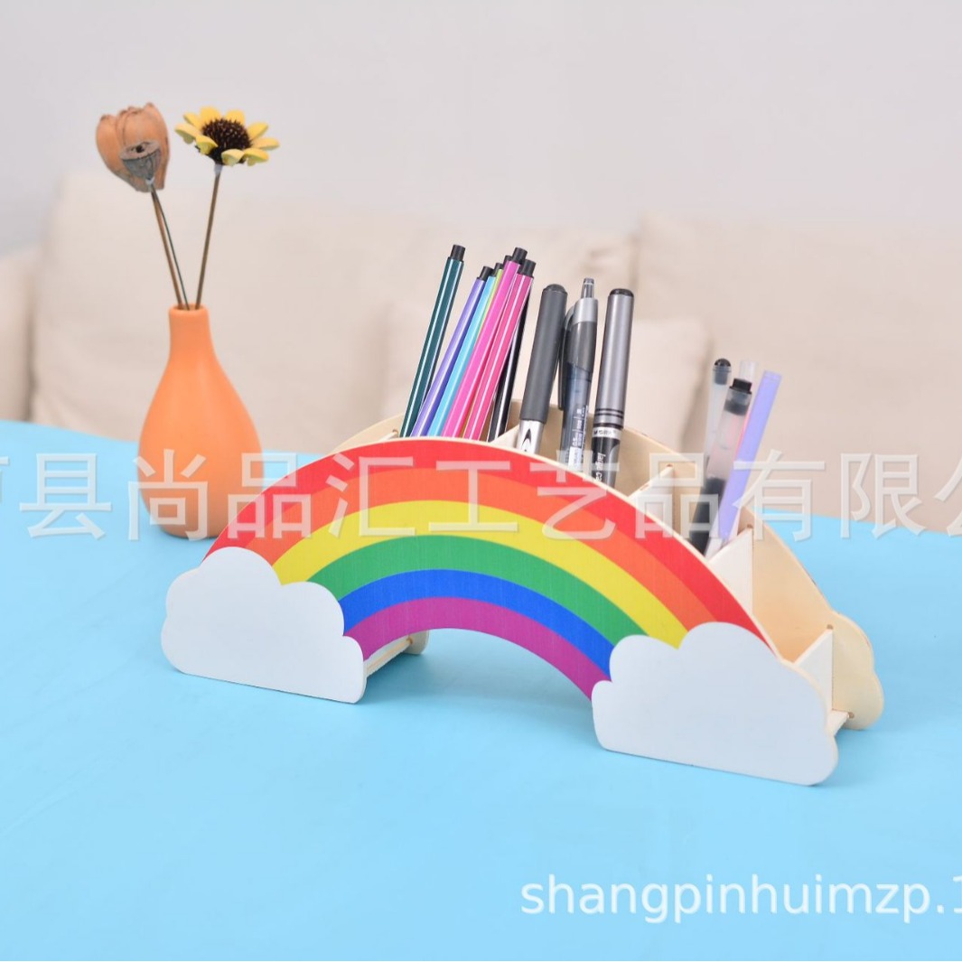創意楊木多格虹筆立て家庭用木製デスクトップ学習用品収納筒彩虹橋実木筆立て