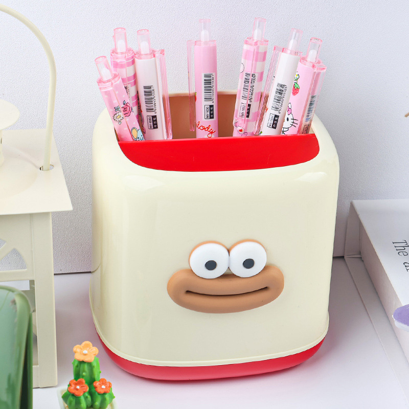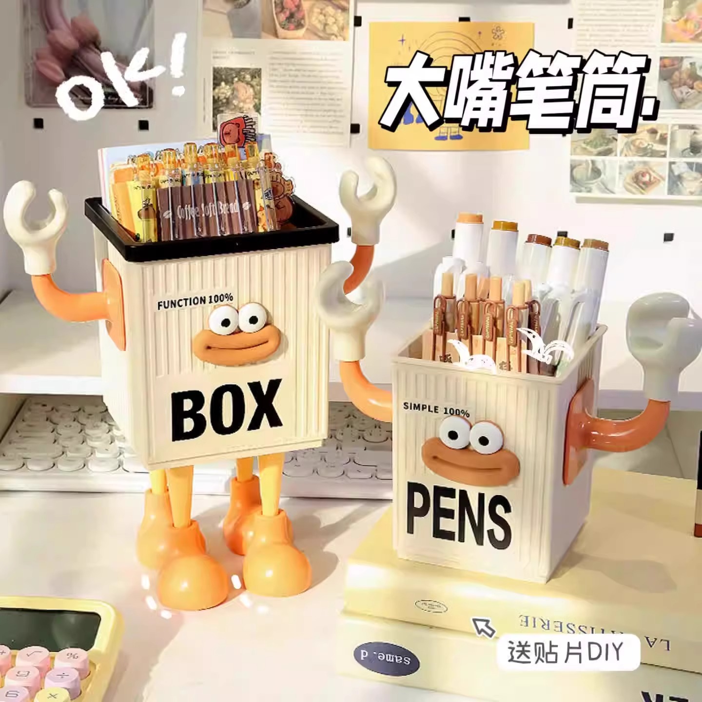 回転式ペン立て 多機能 大容量 卓上 厚型 ペンホルダー 収納ボックス 学生用ペン立て クリエイティブで可愛い 漫画風