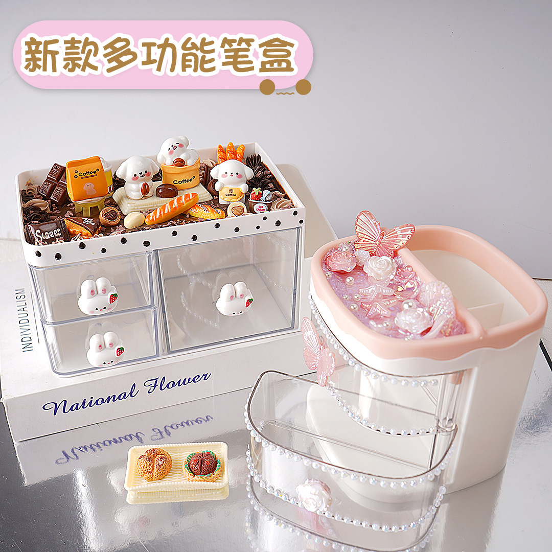 Ins风かわいいクリームペン学生デスクトップ文房具収纳ボックスオフィス多层化粧品収纳卸売
