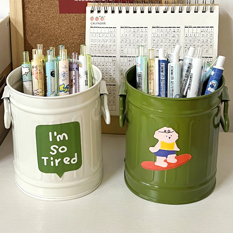 クリエイティブ鉄芸筆筒レトロins風小鉄桶化粧ブラシ収納筒学生デスクトップ文房具収納ケース