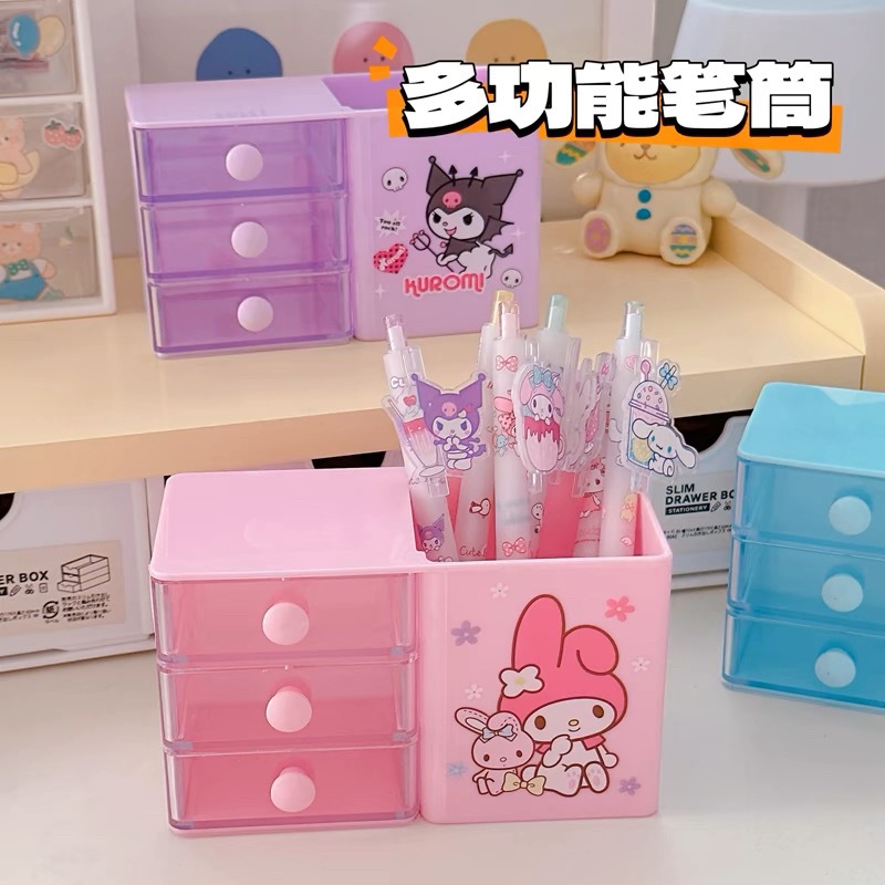 クリエイティブかわいいアニメアクリル三麗鴎筆筒透明多機能収納ケース学生文房具デスクトップ置物