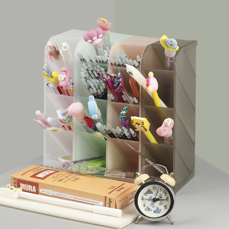 斜め挿し式の筆筒のアイデアのプラスチックの収納箱の多機能の事務机の文房具の棚の多格の化粧の筆筒