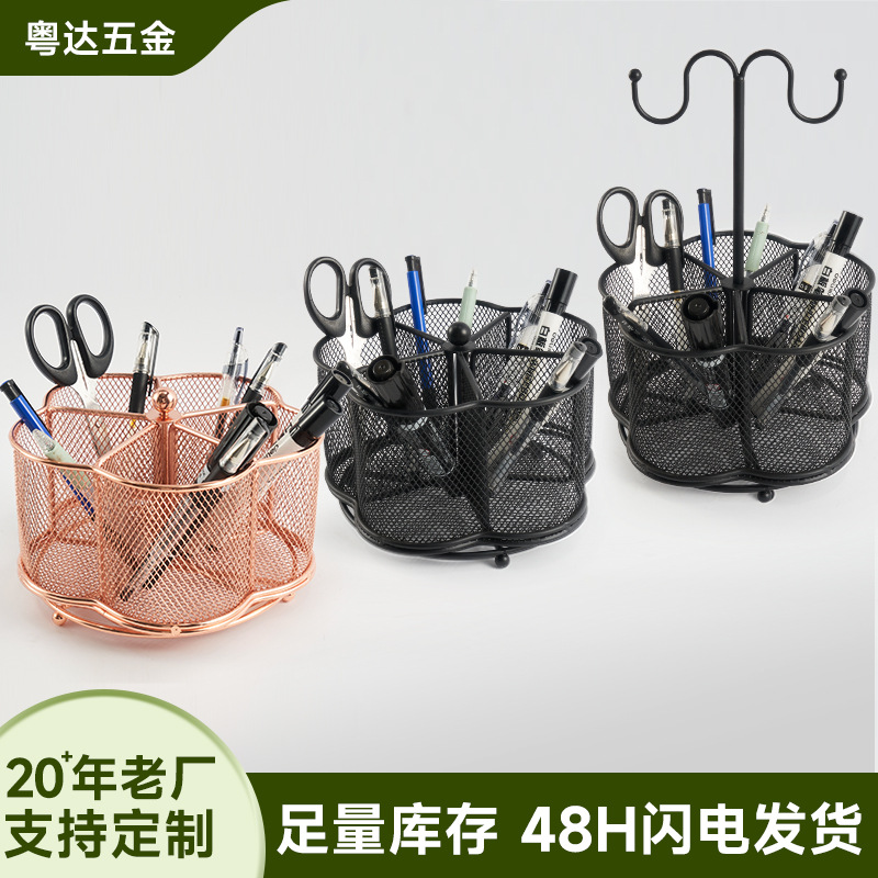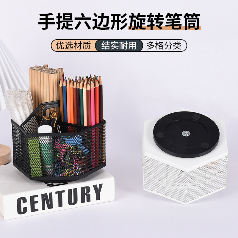 メタルグリッドペンホルダー回転ペンホルダー六角文具ペン収納シンプルなメッシュファッションデスクトップストレージ