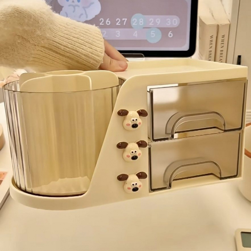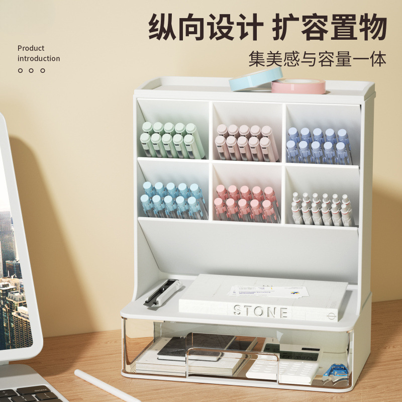 斜め挿し式ペン立て引き出し付きデスクトップ創意可愛い収納ボックス大容量多機能マグペン収納棚