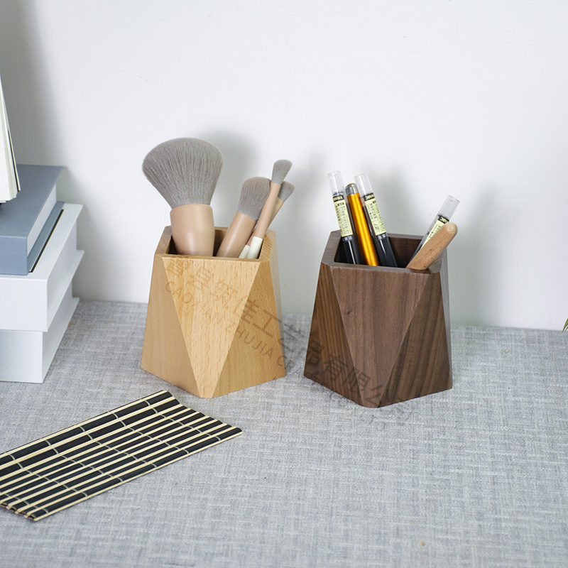 現物黒胡桃木筆立てオフィスデスクトップ文房具収納ケースひし形実木質筆立て化粧ブラシ