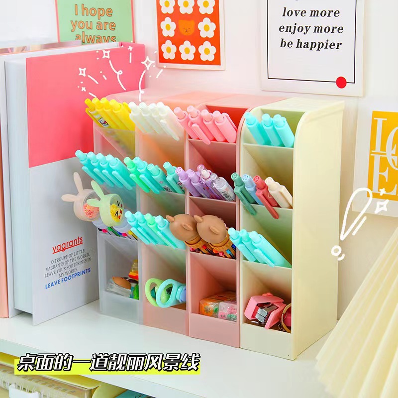 ネットレッドins風純色個性シンプル透明ペンホルダー多格斜め挿し式ペンホルダー学生デスクトップ収納棚