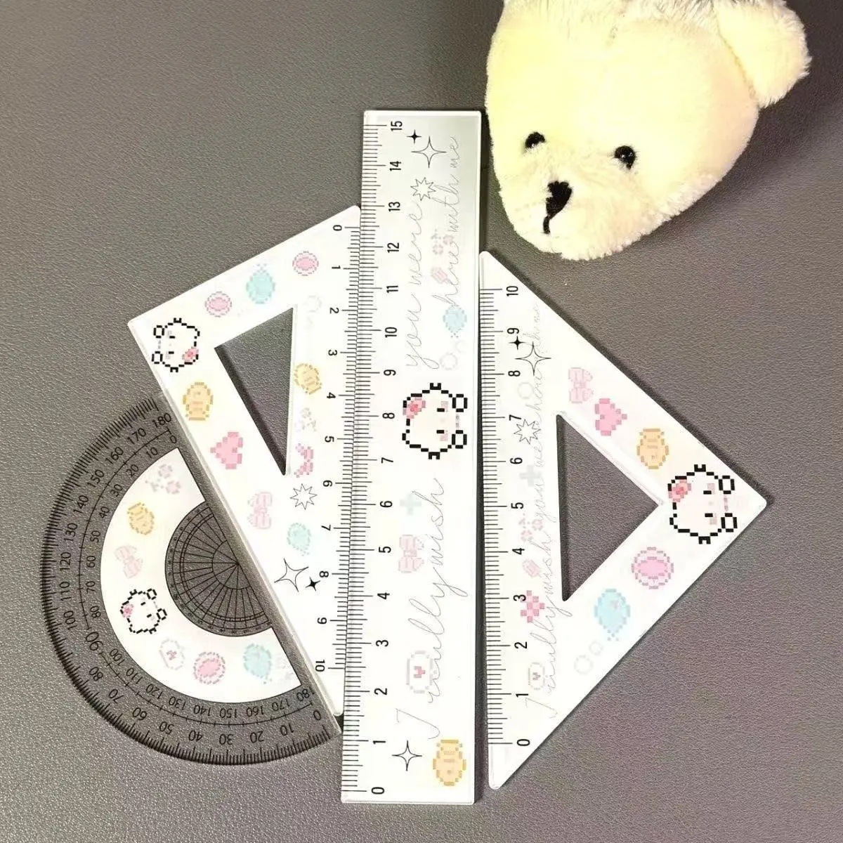 漫画 KT ピクセル定規学生アクリルフルセット三角定規文具ラウンド定規かわいいイン