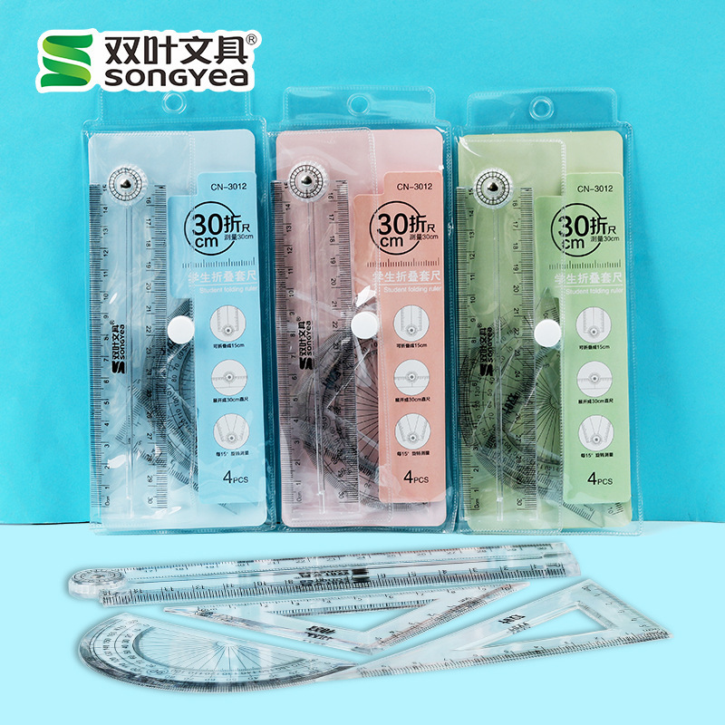 折り畳み定規30cm直尺セット4点セット卸売り学生学習用品賞品文房具試験用開学シーズン