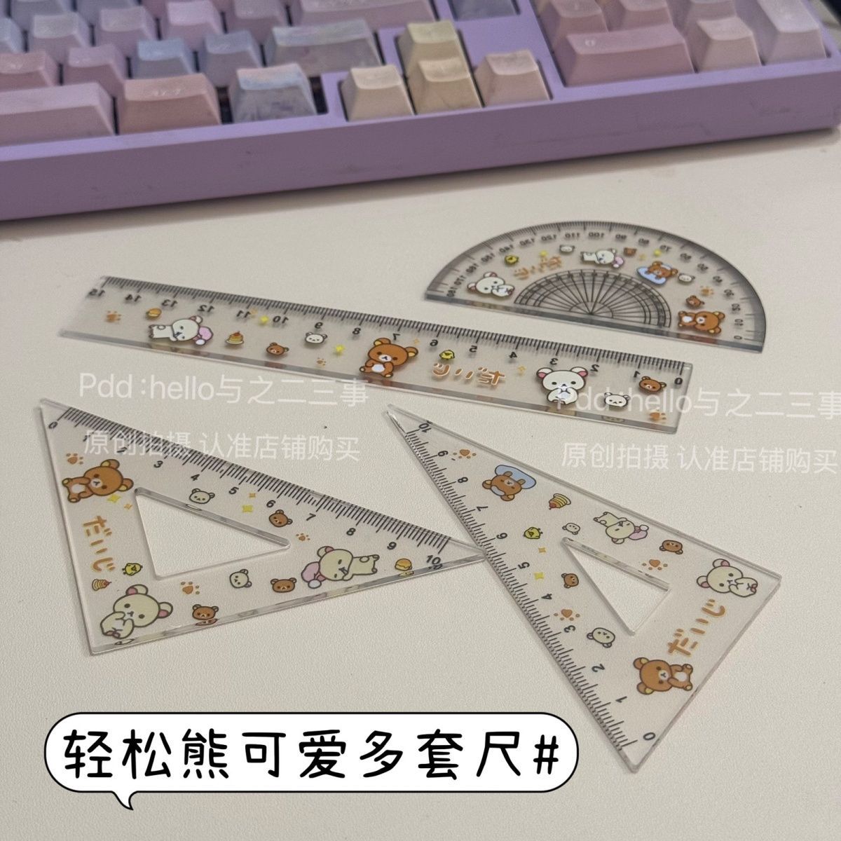 リラックマ透明学生ジャケット4本の学習専用4セットの超かわいい文房具学生三角定規