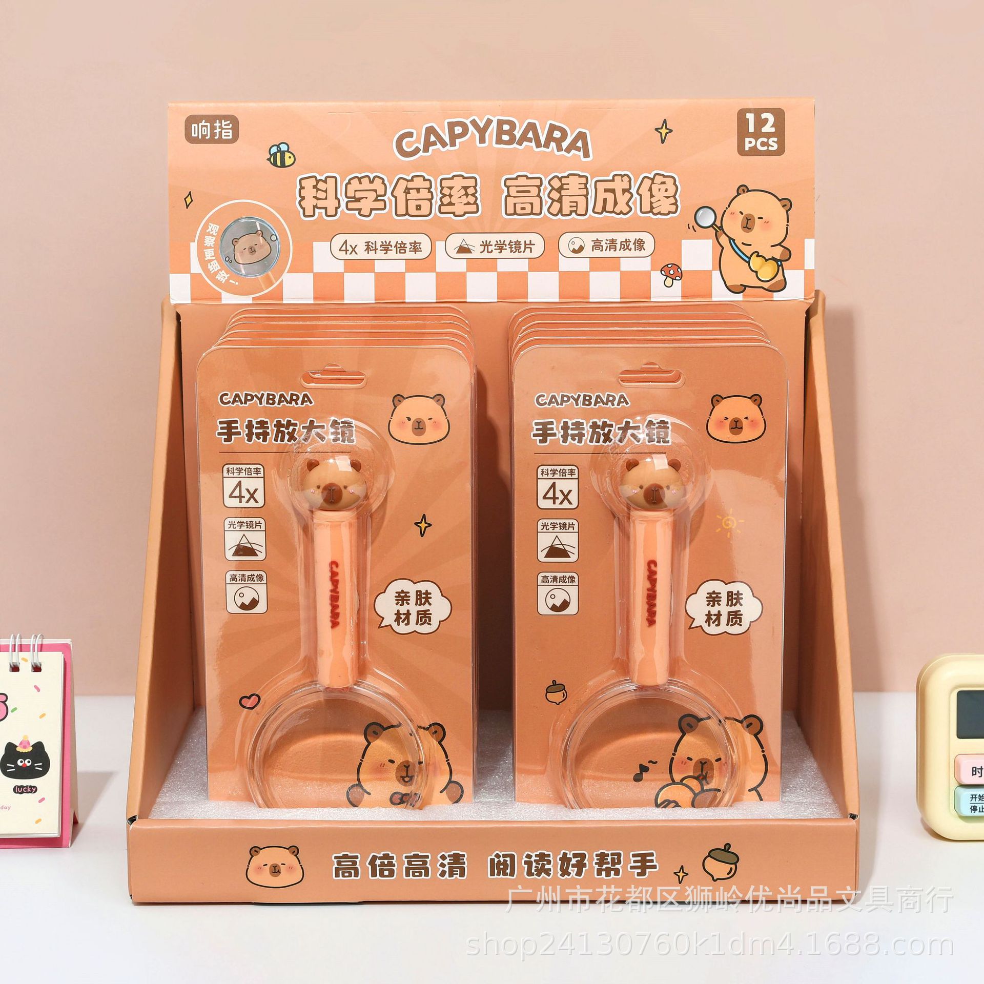 新創意キャラクターのカピバラシリーズは拡大鏡を持っています。